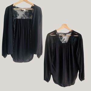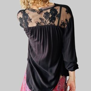 FLANNEL Black Lace Back Silk Trim Blouse – Size 0 (S) – Australian Quiet Luxury