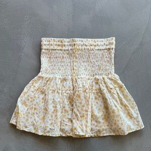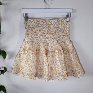 FLANNEL Cream and White Floral Smocked Waist Skirt