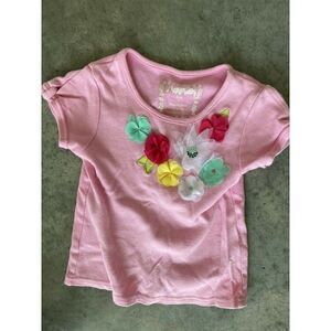 Lightweight crepy material with elastic waist and a bow on this flap doodle sleeveless blouse. Now at the waist and fringe detail down both sides of body starting at arm opening. Rainbow neon fringe in pink, orange, yellow, and blue. Gold trim detail with missing small section in the right near pit. See photos. Machine wash cold; tumble dry low. Small pineapple patch at left hip near hem.
