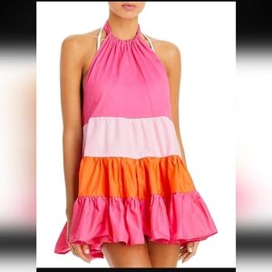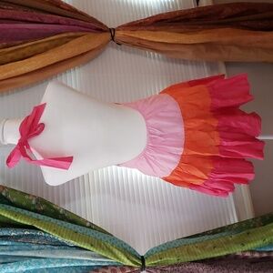adorable! ties behind the neck, open back, pink, fuchsia and orange.