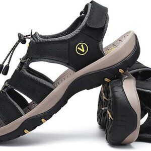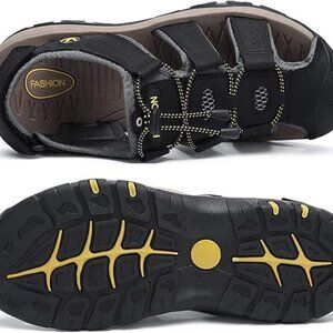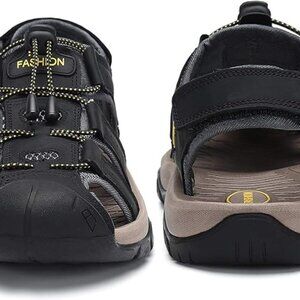 FLARUT Men's US 7-12 Black Sport Sandals Outdoor Hiking Sandals Closed Toe Leath