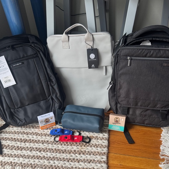 Brand New with tags backpacks, squash soaps, cosmetic case , carabeaners