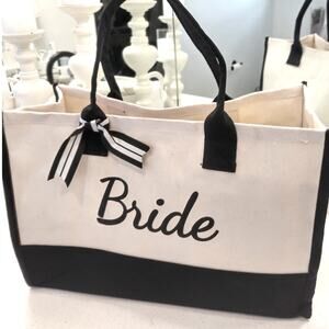 ❤️ NEW BRIDE gift TOTE! off white/canvas and black