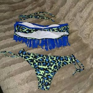 Retrospect Fringe Tassel Bandeau Bikini - Push up top, detachable neck straps, low waist, sexy & hot bright colors sure to get noticed at the beach! New, never been worn. Thank you π