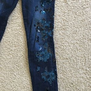 Guess skinny jeans with sequin details. Super fun and cute jeans. Purchased at a Guess store in Italy. Perfect condition! Only worn maybe 2 times. 32" inseam. Make me an offer!