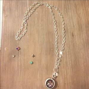 Medium silver origami owl living locket with Swarovski crystals/ 18-20" large oval chain AND 7 charms (pictured)