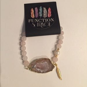 Rose Quartz is the stone of the heart. It carries an energy of peace, compassion, and comfort. Natural gold plated Druzy pendant bracelets. Each is accented with faceted rose quartz beads, gold beads, natural pearls, and a gold plated bead at the back. It is finished with Function and Fringe's signature gold feather. Every piece is different. The bracelets I have are the last 4 pics. Let me know which one you want. Function and Fringe Jewelry is designed and made with❤️ in California.