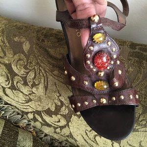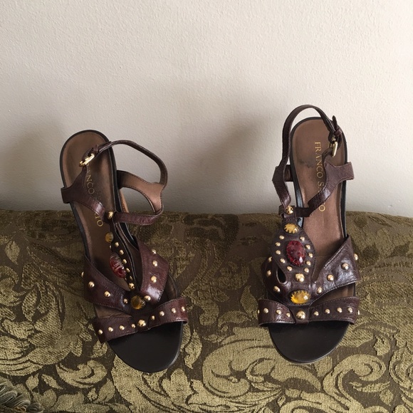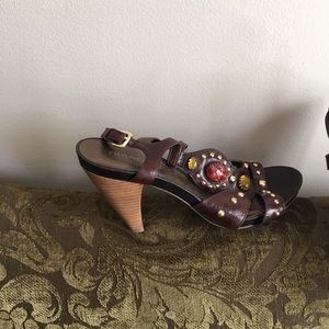 Franco Sarto -Brown leather 3 1/2 inch stacked heel sandals. Gently worn see pictures.