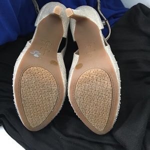FLASH⚡️SALE✨Silver Jessica Simps Jeweled Pumps w Ankle Strap