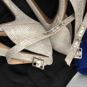 💎 The fabric is a silver waffle texture while shoe tips are jeweled at the tips, fading as they cascade up toward the ankle support (wrap the ankle style)-Heel 👠 4.5 inches.