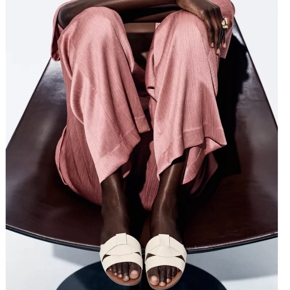 FLAT CROSSED LEATHER SANDALS