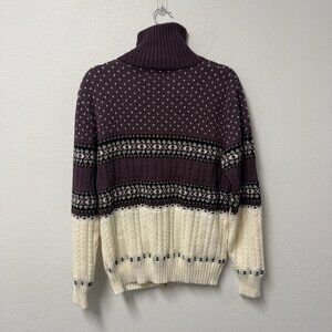 FLATIRON MILLS SWEATER VINTAGE KNIT FULL ZIP WOMENS M NORDIC CREAM PURPLE WINTER