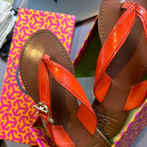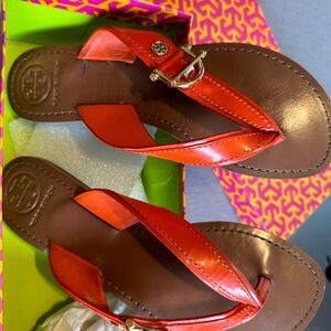 Tory Burch EQUESTRIAN ORG 805 NORA FLAT THONG -PATENT CALF