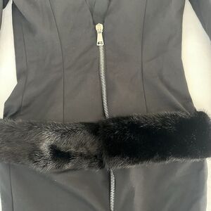 FLAVIO CASTELLANI Black Low Back Fur Trim Cocktail Dress US 8/ 44 Italy