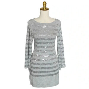 FLAVIO CASTELLANI | Grey Sequins Embellished Evening Dress Stretch Sz 44 (US 8)