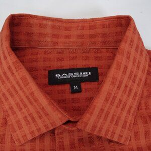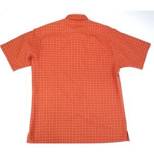 FLAW** Bassiri Short Sleeve Button up Shirt Men's Size M Orange Checker Textured