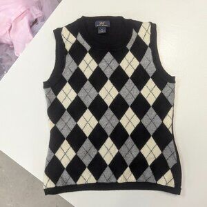 *FLAW Brooks Brothers 346 Argyle Sweater Black/Gray/Cream *M XS 100% Merino Wool