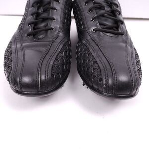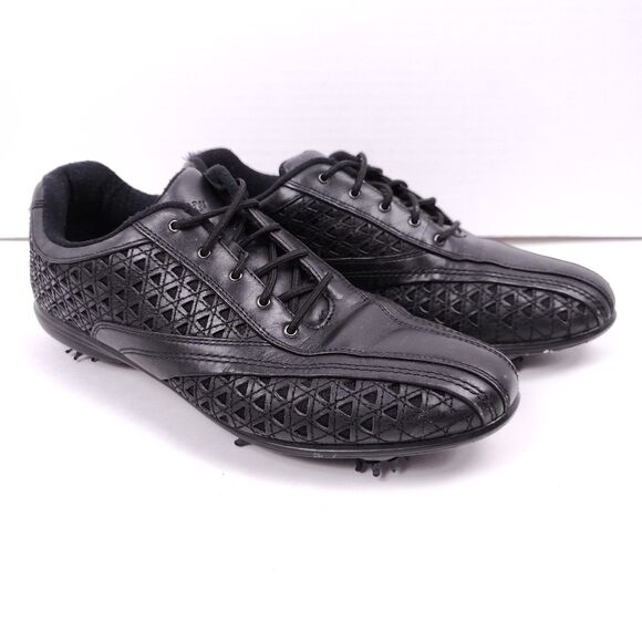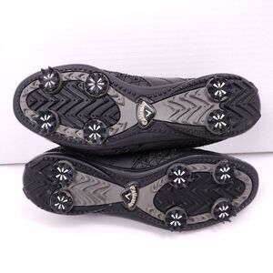 Spikes need to be replaced! Some signs of wear as shown but in great condition! Sleek and very nice all black leather golf shoes.
