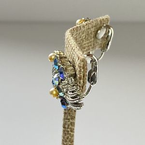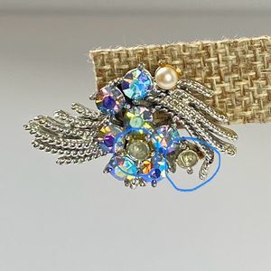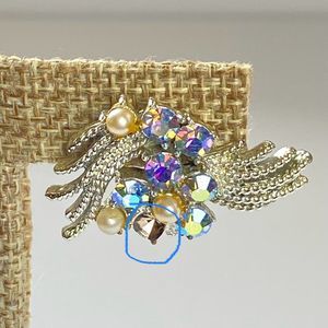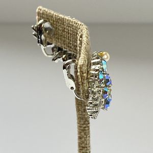 FLAW Vintage Coro AB Rhinestone Faux Pearl Silver Tone Spray Clip On Earrings
