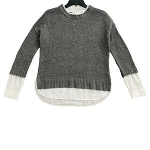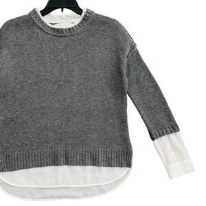 FLAWED Brochu Walker Eton Grey Wool Cashmere Sweater with White Underlay Size XS