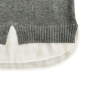 A luxurious, wool cashmere blend sweater is pre-layered over a recycled georgette underlayer which creates the illusion of two pieces in one. The shirting peeking collar, cuffs and hem are attached on the inside of the knit layer, remaining lightweight and trans seasonal, while the slightly oversized fit makes it cozy. The mixed media sweater that completes any look.