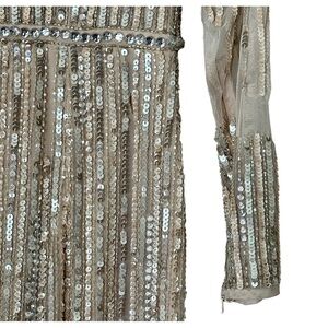 FLAWED NWT Mac Duggal Sheer Full Sequined A-Line Gown Dress in Rose Gold size 4