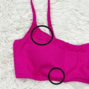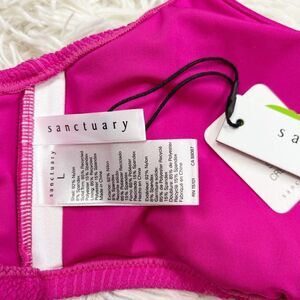 HAS FLAWS. Brand new with tags Sanctuary Sandbar Solids Hibiscus Pink Seamed Bralette Bikini Top Size Large. Two marks on front of top, circled in pic. Has removable pads. Adjustable straps.