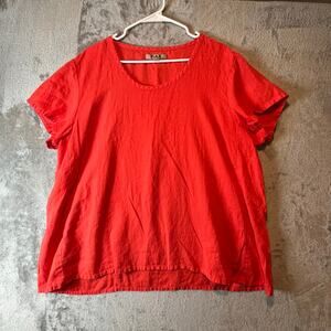 FLAX 100% Linen Boxy Tee Red Minimalist Oversized Lagenlook Top Size Large