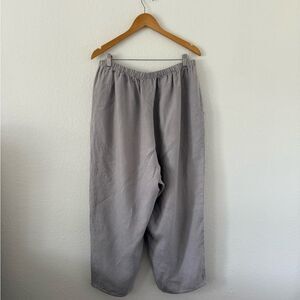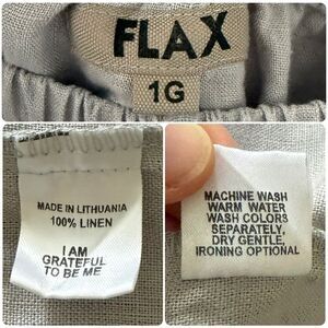 Stay effortlessly cool and comfortable in these classic FLAX wide leg pants, crafted from breathable 100% linen. Featuring a soft gray tone, relaxed silhouette, and an easy pull-on elastic waistband, these pants are perfect for lounging, travel, or everyday wear. Designed in the signature minimalist FLAX aesthetic, they offer timeless style and sustainable comfort. Unlined. Side pockets. Preowned with some pilling at crotch as pictured.