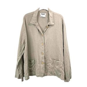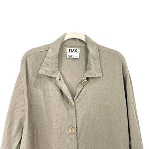 FLAX 100% Linen Lagenlook shirt top Sz L neutral beige boxy