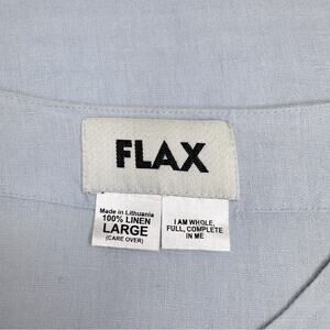 FLAX 100% Linen Light Blue Over Size Button Crew Neck Long Sleeve Pockets Sz L