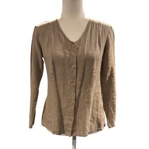FLAX 100% Linen Lightweight Button-Up Shirt Jacket – Petite– fits like a Small/Medium with shorter torso and sleeves. Please see measurements for best fit