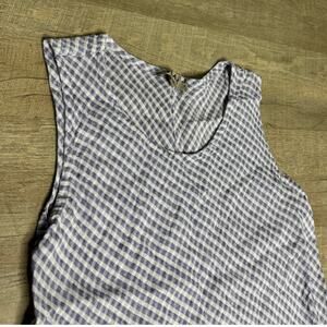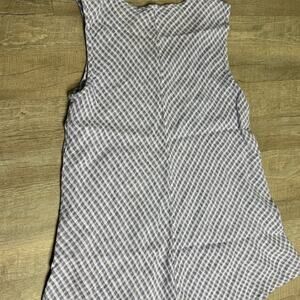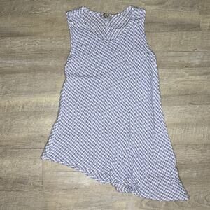 Flax Purple White Linen Gingham Check Sleeveless Asymmetric Hem Tunic Size M