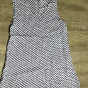 FLAX 100% Linen Purple Gingham Check Sleeveless Asymmetric Hem Tunic Size Medium