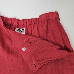 FLAX 2 Piece Set Linen Top & Wide Leg Crop Pants Red Womens Small Boho Lagenlook