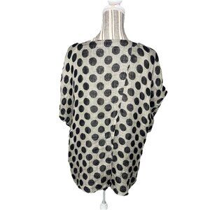 FLAX Beige Black Polka Dot Linen Back Slit Shirt Size SMALL DRY CLEANED ONLY