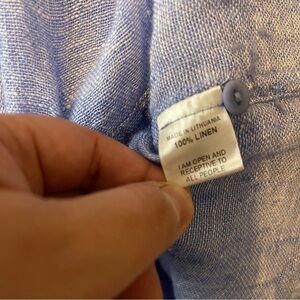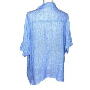 FLAX Blue 100% Linen Short Sleeve Tunic Top Women's Small