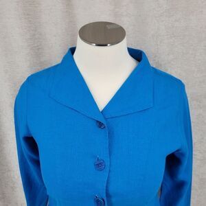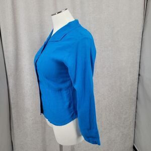 FLAX Blue Linen Button Up Top or Lightweight Jacket Women's Size Large