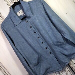 FLAX Blue Nubby Front Snap Long Sleeve Shacket Size Medium