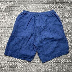 FLAX Brand Blue Linen Shorts Size Small Elastic Waist Lagenlook Casual Comfort