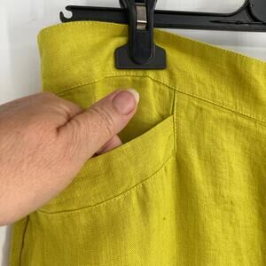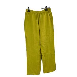 FLAX By Jeanne Engelhart 100% Linen Wide Leg Pants Elastic Waist In Green Size M
