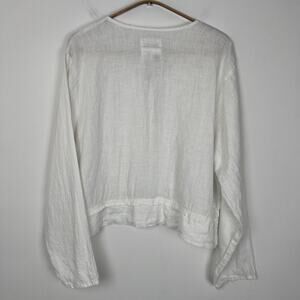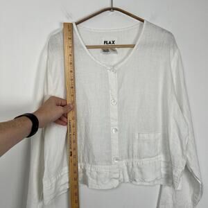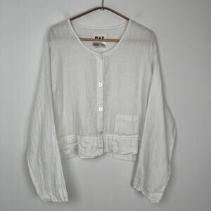 FLAX By Jeanne Englehart Sz M Long Sleeve Button Front Round Neck Linen Blouse