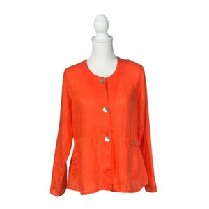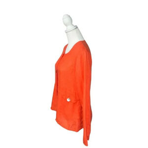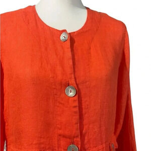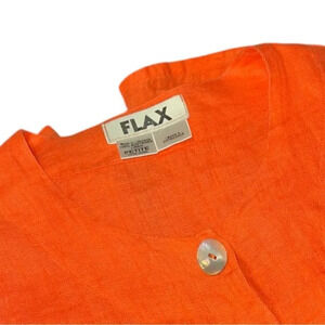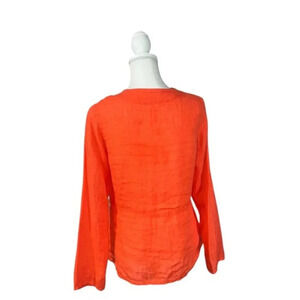FLAX CORAL ORANGE LINEN LONG SLEEVE BUTTON DOWN PETITE TUNIC SHIRT - Med…