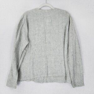 FLAX Jacket Womens Large Gray Jeanne Engelhart Linen Striped Button Front V Neck