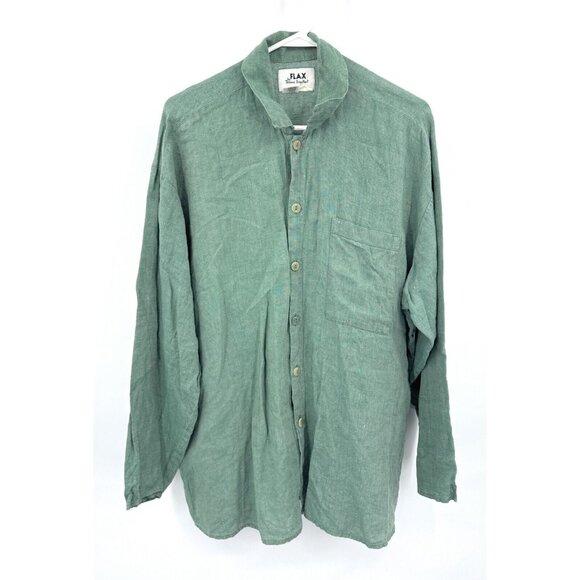 FLAX Jeanne Engelhart Shirt Mens Large Green 100% Linen Button up