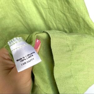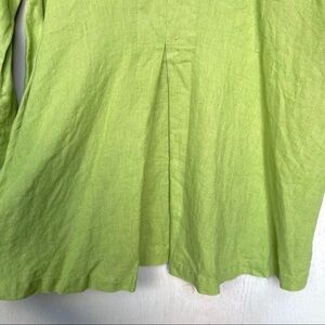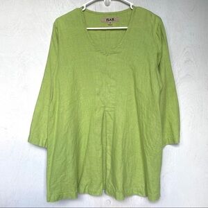 FLAX Lime Green 100% Linen Tunic V-Neck 3/4 Sleeve