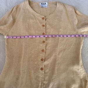 FLAX Linen Button Up Orange Yellow Wheat color Small