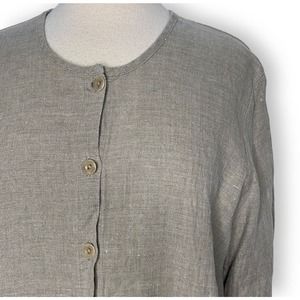 FLAX Linen Lagenlook Linen Tunic Top Size Medium Tan Cream Gray Button Up Blouse