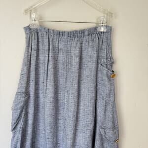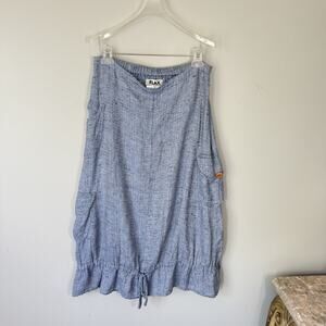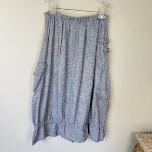 FLAX Linen Midi Balloon Skirt Ruched Pocket Size S Langenlook Blue Drawstring