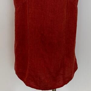 FLAX Linen Midi Skirt Patch Pockets with Back Slit Brick Red L
